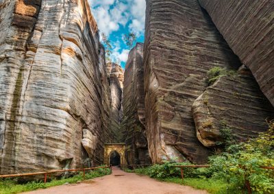 Okruh Adršpašsko-teplickými skalami po zelené a žluté značce vás provede oběma skalními městy, která odděluje hluboká Vlčí rokle. Celý okruh je dlouhý asi 15 km a budete potřebovat asi 6 hodin. Je možné si jej zkrátit a dojít jen do Teplic nad Metují a vrátit se do Adršpachu 5 km vlakem (busem nelze, protože silnice je dlouhodobě uzavřená kvůli rekonstrukci). Zastávka v Adršpachu je hned u vchodu do skalního města.